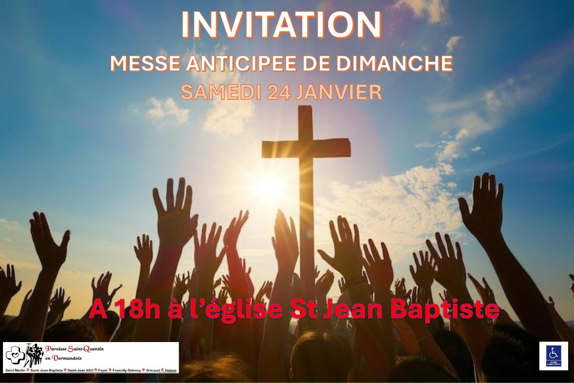 Samedi 24 janvier, à 18h, à l’église St Jean Baptiste, Vous êtes tous invités à la messe anticipée du dimanche. N’hésitez pas à inviter autour de vous à participer à cette célébration.