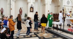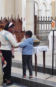 Tous les enfants baptisés cette année étaient également invités à venir avec leurs parents pour renouveler le signe de croix avec l’eau bénite